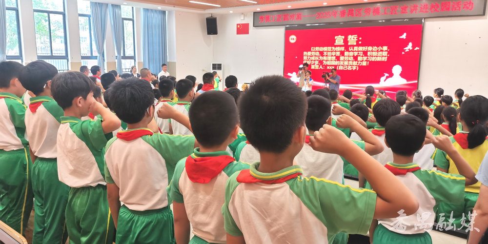 活动以“奋斗点亮童年,榜样引领未来”为主题,多样化的互动形式贯穿全程,为师生们带来深刻的精神启迪;劳模精神、劳动精神与工匠精神以生动可感的模样融入青少年心中,让“劳动光荣” 的信念深深扎根。活动中播放了专题片《每一步,“禺”你同行》,影片里不同岗位工人的奋斗身影,直观呈现出 “劳动创造幸福” 的深刻内涵,深深触动了现场每一位观众。